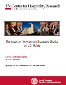 “… Using data on 34,695 hotels from 2000–09, this study examines how the external shocks of the terrorist attacks on September 11, 2001, and the financial crisis of late 2008 affected aggregate occupancy, price (average daily rate), and revenue per available room (RevPAR) within the U.S. lodging industry…”.